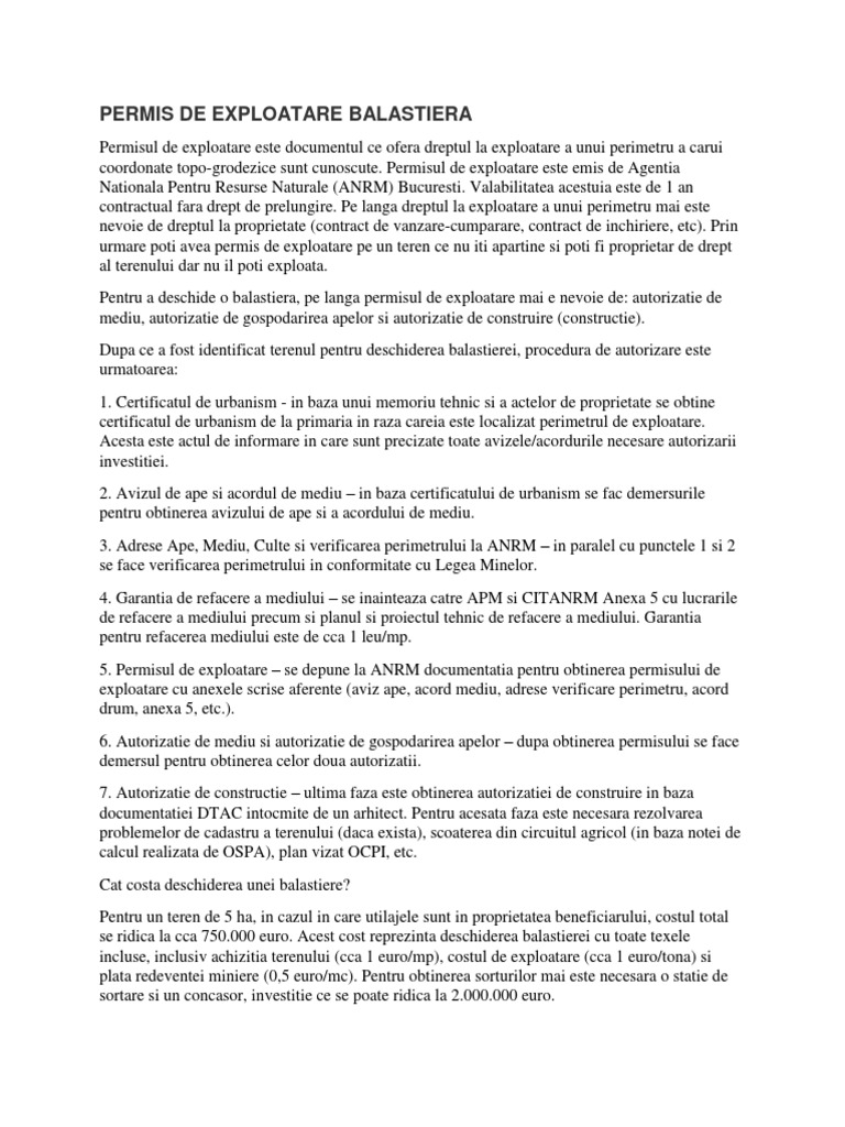 Permise De Exploatare Redeventa Miniera Proiectare Miniera