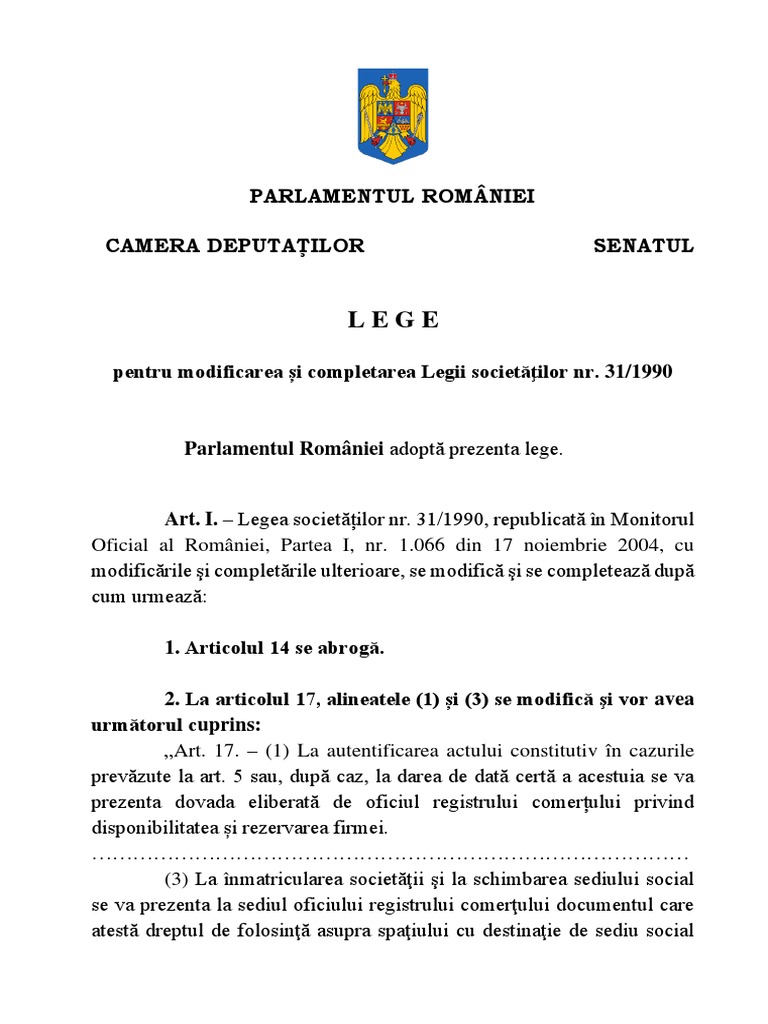 Legea 102 De Modificare A Legii 31 1990 Privind Societatile Comerciale Universul Fiscal