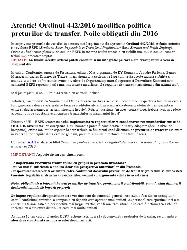 Ordinul 442 2016 Modifica Politica Preturilor De Transfer Noile Obligatii Din 2016