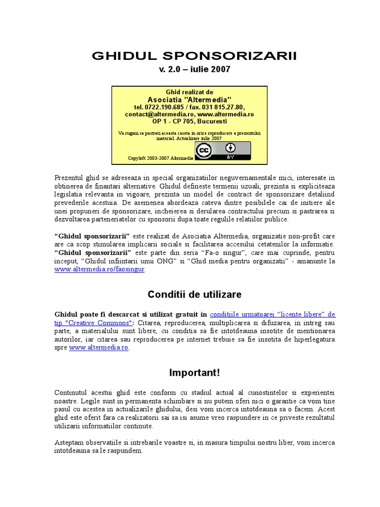 Sponsorizarea Model Contract Clauze Obligatorii Si Facilitati