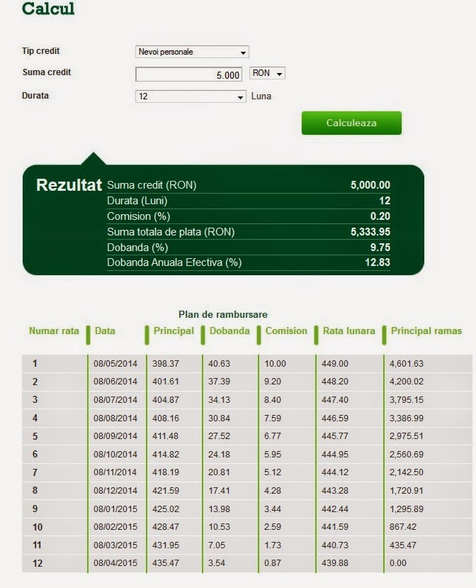 Credit De Nevoi Personale Calculator