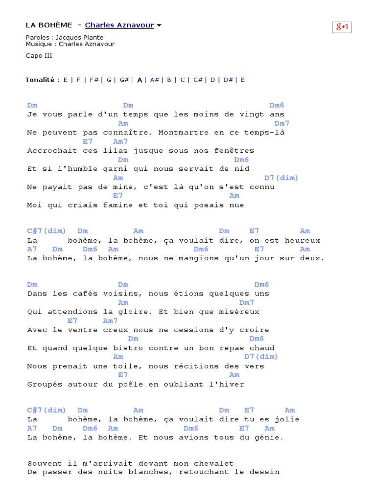 Paroles Et Musique De La Boheme Charles Aznavour Lalo Pro