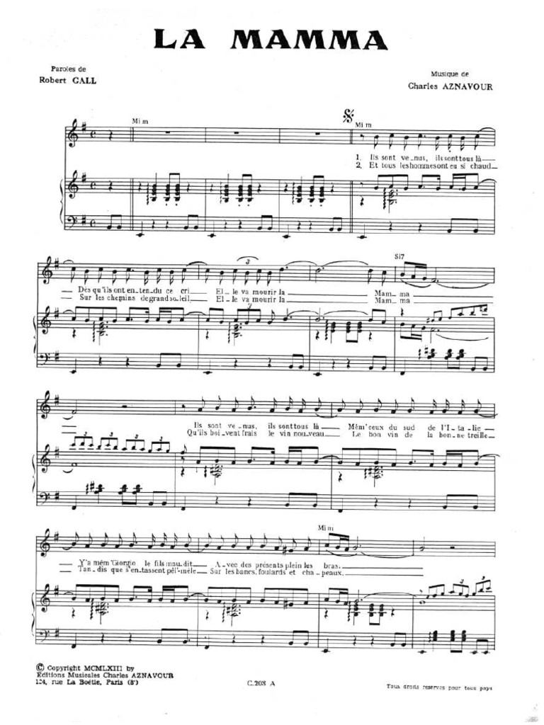 La Boheme Charles Aznavour Partition Pdf