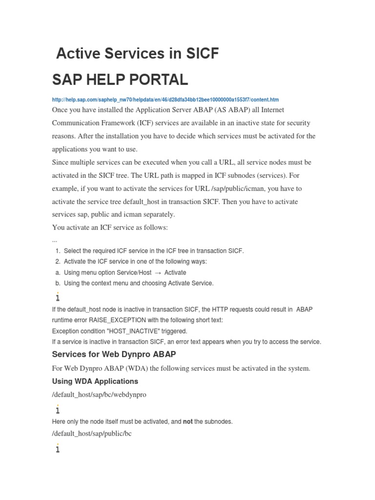 Active Services In Sicf Uniform Resource Locator Hypertext Transfer Protocol