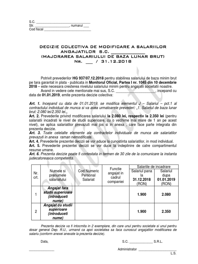 Decizie Colectivă Majorare Salariu 2019 Model Theexperts Ro
